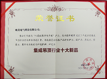 • 2013歐美榮獲中國集成吊頂行業優秀企業稱號